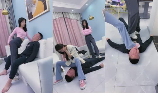 高跟光腿膝盖顶裆顶腹加关节技虐待男M