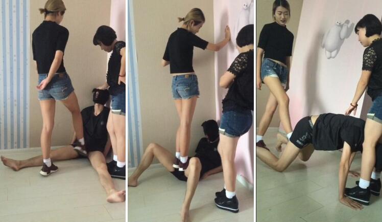(姗姗和云菲S)双主高跟丝袜裸足调教脚奴小畜生