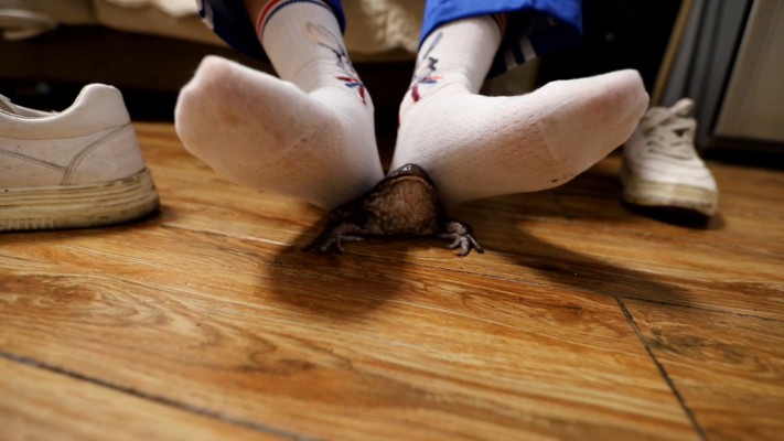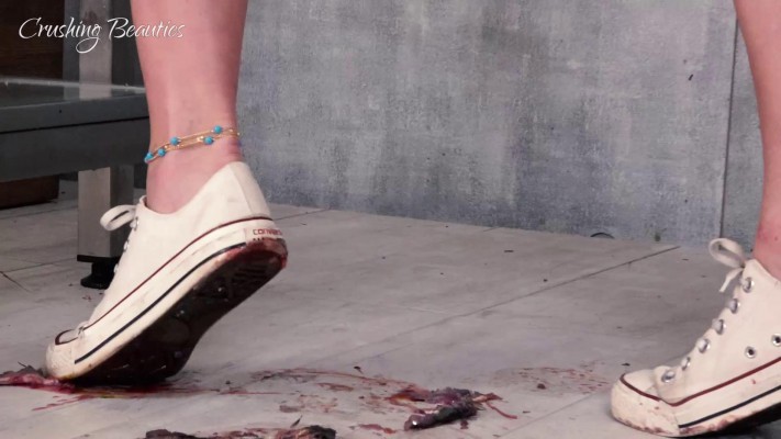 清纯系妹子Lily短裙帆布鞋踩金鱼
