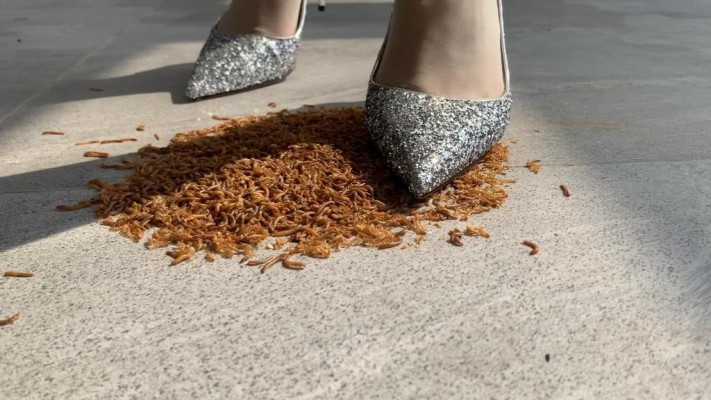 大龟被大学美女穿可爱的棕色高跟长靴剁踩成肉泥