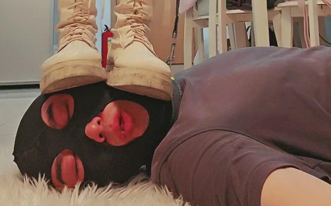 【海绵大大】踩踏黑丝马丁靴全体重踩踏舔高跟鞋底鞋跟虐乳