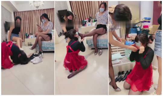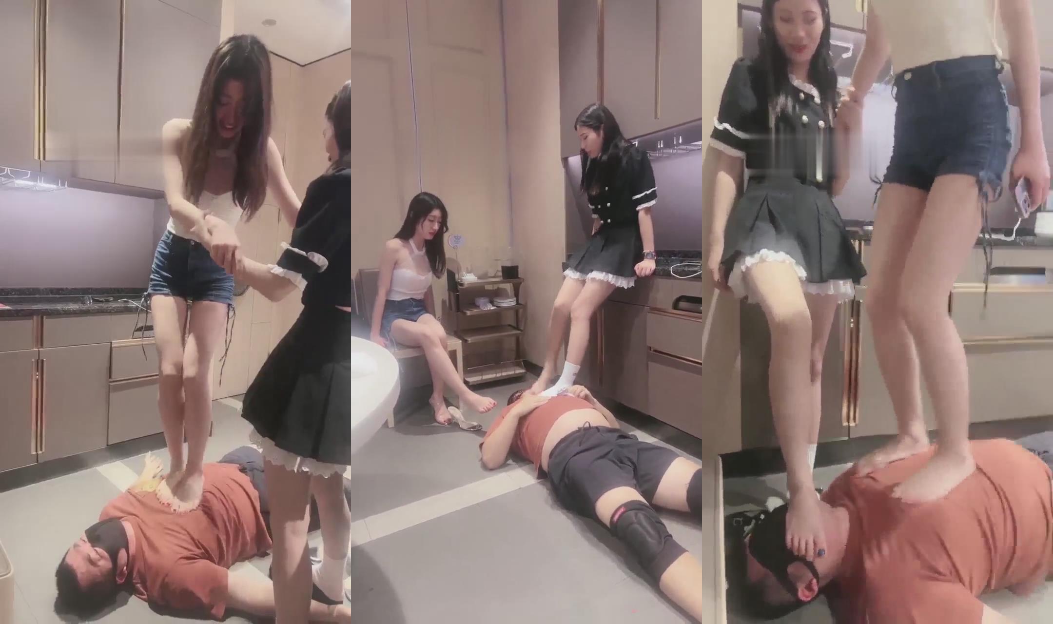 阿月-首次调教两个女奴-黑丝-高跟踩踏-舔裸足