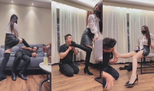 月影儿和重庆男神 被套路第一美女调教 踢裆 闻舔黑丝脚